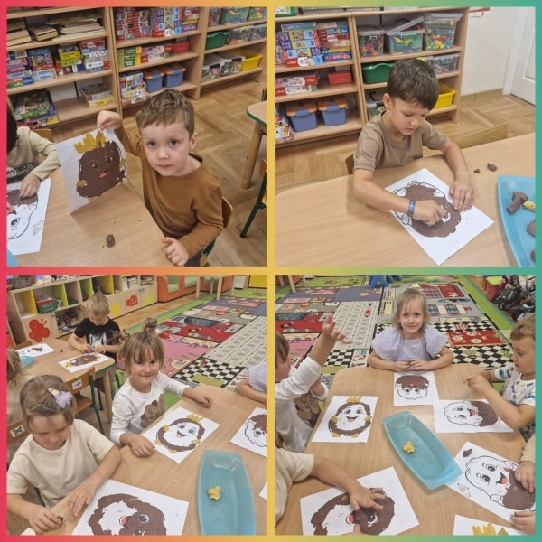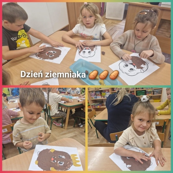 Drugą atrakcją to „Święto Ziemniaka”. Dzieci zapoznały się z wyglądem ziemniaka, uczestniczyły w zabawie plastyczne „Król Ziemniak” a następnie świetnie bawiły się w ogrodzie przedszkolnym degustując wyśmienite frytki belgijskie Zabawę przy muzyce uświetnił rodzic naszego dziecka.