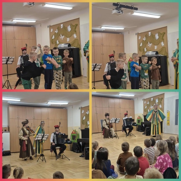 Koncert na którym dzieci poznały utwory takie jak: mazur, kujawiak, oberek, krakowiak i polonez . Utwory były grane na skrzypcach ,akordeonie i na ukulele. dzieci poznały budowę i dzięki tego rzadko spotykanego instrumentu.