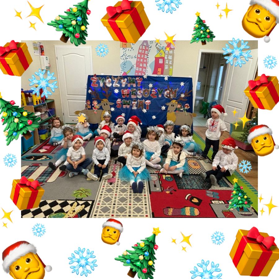 16 grudnia do przedszkola zostali zaproszeni Rodzice na uroczyste spotkanie wigilijne z występami dzieci i warsztatami plastycznymi. Grypa najmłodsza przygotowała krótki program artystyczny z piosenkami świątecznymi i kolędami.