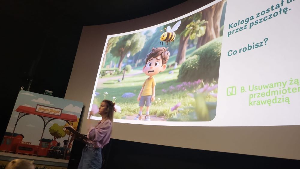 23.09 - Tego dnia nasza grupa wybrała się na wycieczkę do Kinoteki na Multimedialne widowisko edukacyjne pt. "Dzięcięca Akademia Bezpieczeństwa". Dzieci miały okazję nauczyć się jak rozpoznawać zagrożenia, jak pomóc koleżance lub koledze w niebezpiecznej sytuacji. Odkryły co warto mieć ze sobą podczas pieszej wycieczki. Nauczyły się jak wezwać pomoc, jak rozmawiać z ratownikiem i co powiedzieć, dzwoniąc pod numer alarmowy 112. Przedszkolaki obejrzały również film animowany pt "Niezgaszalni".