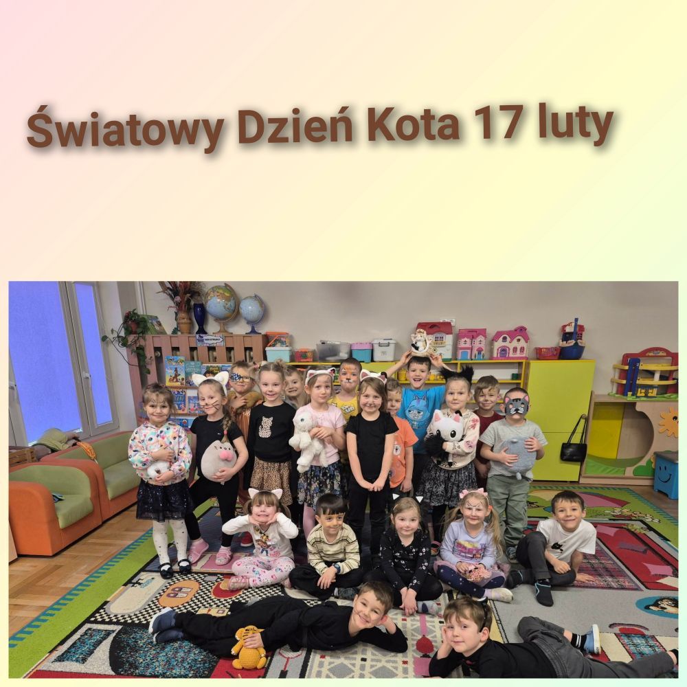 Międzynarodowy Dzień Kota to dzień, który ma podkreślić znaczenie kotów w życiu człowieka, a także uwrażliwić dzieci na często trudny koci los. Nasi wychowankowie w ten dzień przyszły przebrane za koty. Jedna z mam namalowała dzieciom kocie pyszczki. Ten dzień dostarczył wszystkim wiele zabawy i radości, a uwieńczeniem była wystawa kotów narysowanych przez dzieci.