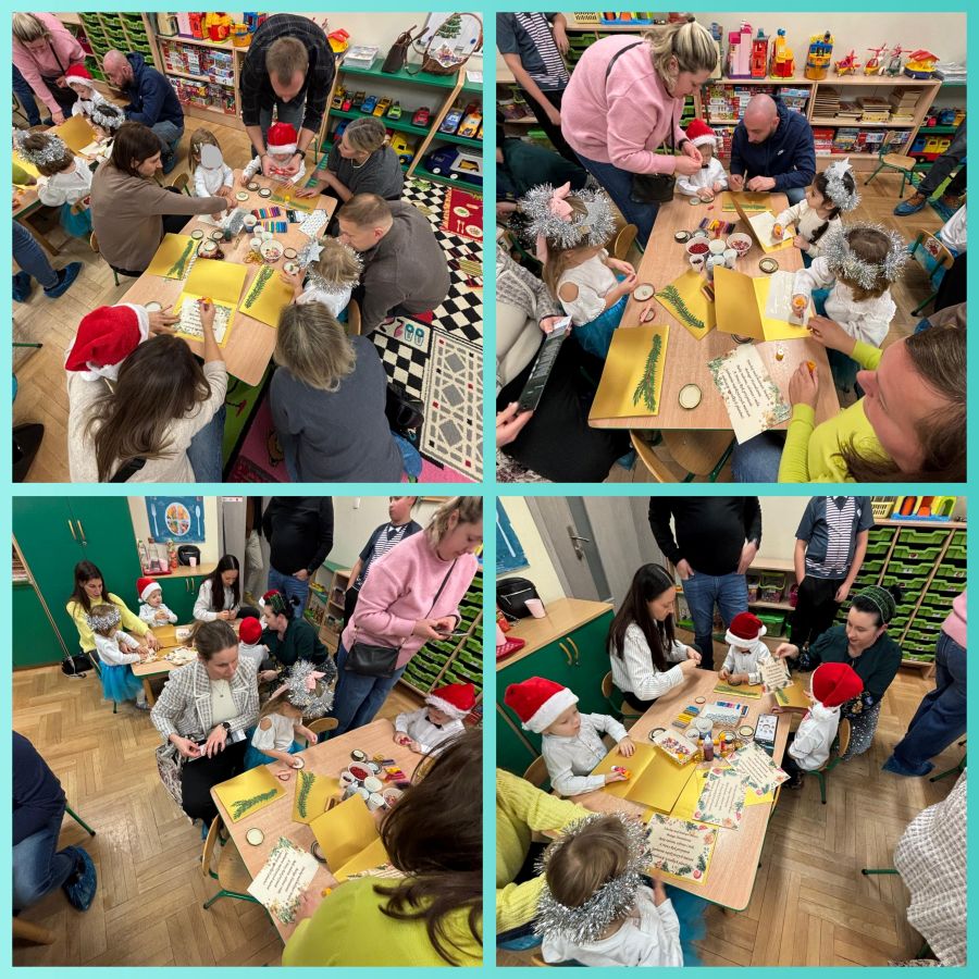 16 grudnia do przedszkola zostali zaproszeni Rodzice na uroczyste spotkanie wigilijne z występami dzieci i warsztatami plastycznymi. Grypa najmłodsza przygotowała krótki program artystyczny z piosenkami świątecznymi i kolędami.