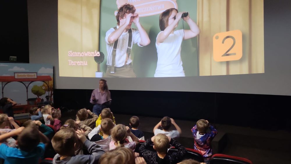 23.09 - Tego dnia nasza grupa wybrała się na wycieczkę do Kinoteki na Multimedialne widowisko edukacyjne pt. "Dzięcięca Akademia Bezpieczeństwa". Dzieci miały okazję nauczyć się jak rozpoznawać zagrożenia, jak pomóc koleżance lub koledze w niebezpiecznej sytuacji. Odkryły co warto mieć ze sobą podczas pieszej wycieczki. Nauczyły się jak wezwać pomoc, jak rozmawiać z ratownikiem i co powiedzieć, dzwoniąc pod numer alarmowy 112. Przedszkolaki obejrzały również film animowany pt "Niezgaszalni".